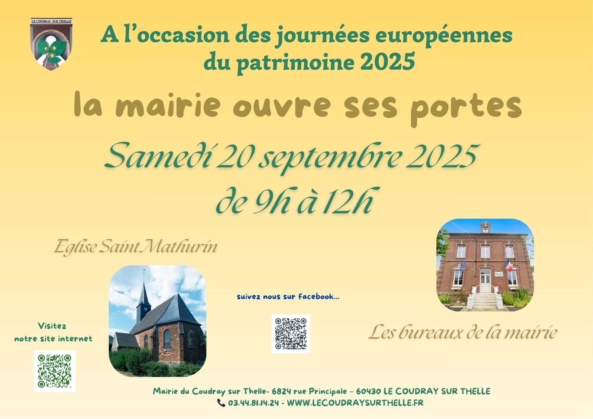 Le samedi 20 septembre 2025, la commune du Coudray-sur-Thelle vous invite à célébrer les Journées Européennes du Patrimoine avec l’ouverture au public de l’église Saint Mathurin et des bureaux de la mairie.
